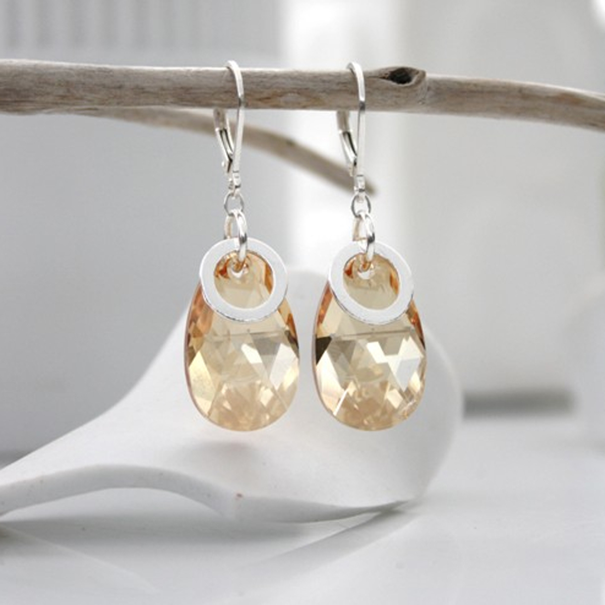 - 22mm Golden Shawdow Swarovski Teardrops with 10mm Sterling Silver Rings