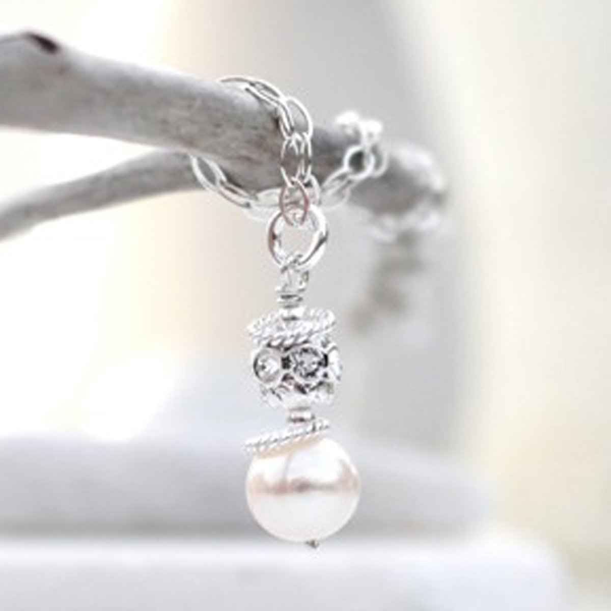- 6mm Swarovski silver plated & crystal ball, white & silver twist ring pendant on silver cable chain.
