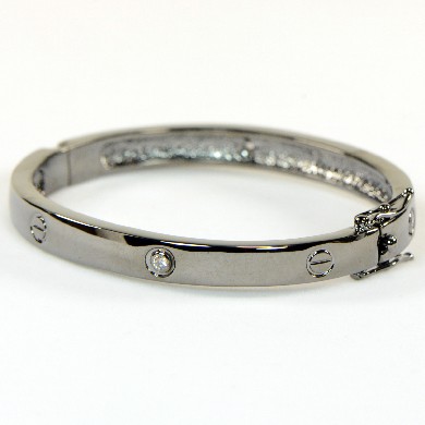 - Gunmetal Designer Inspired Bracelet with Hinge - Double Safety Latch
