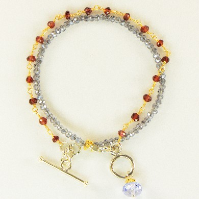 - Garnets Wire Wrapped with a Strand & Charm of Swarovski Crystals