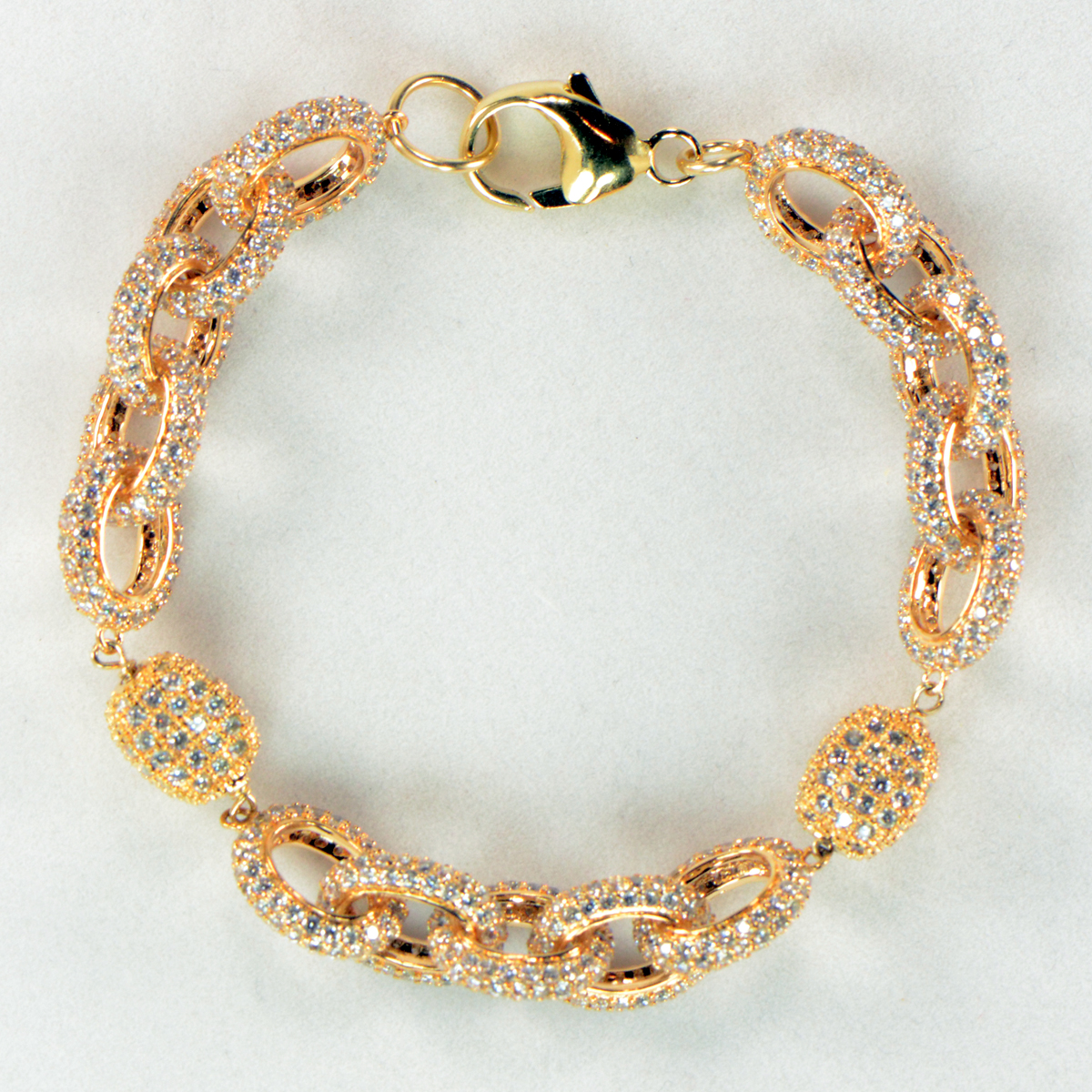 - Sterling Silver Gold Plated Pave Links with Cube Pave Stations