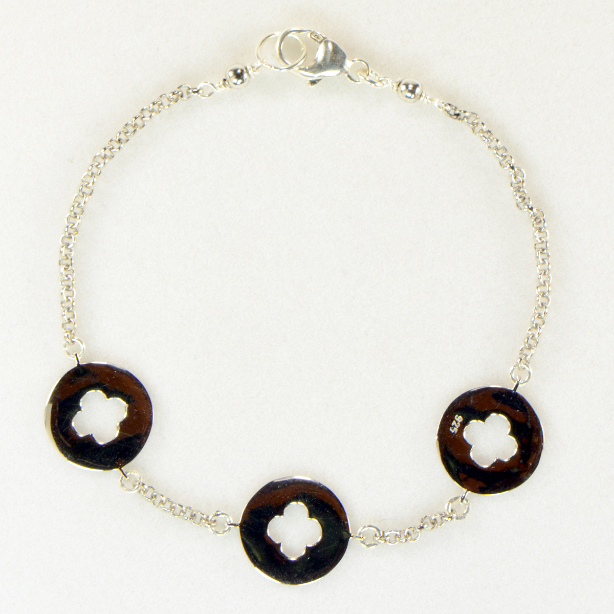 - Sterling Silver with 3 Stations of Cutout Clovers