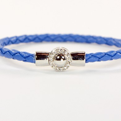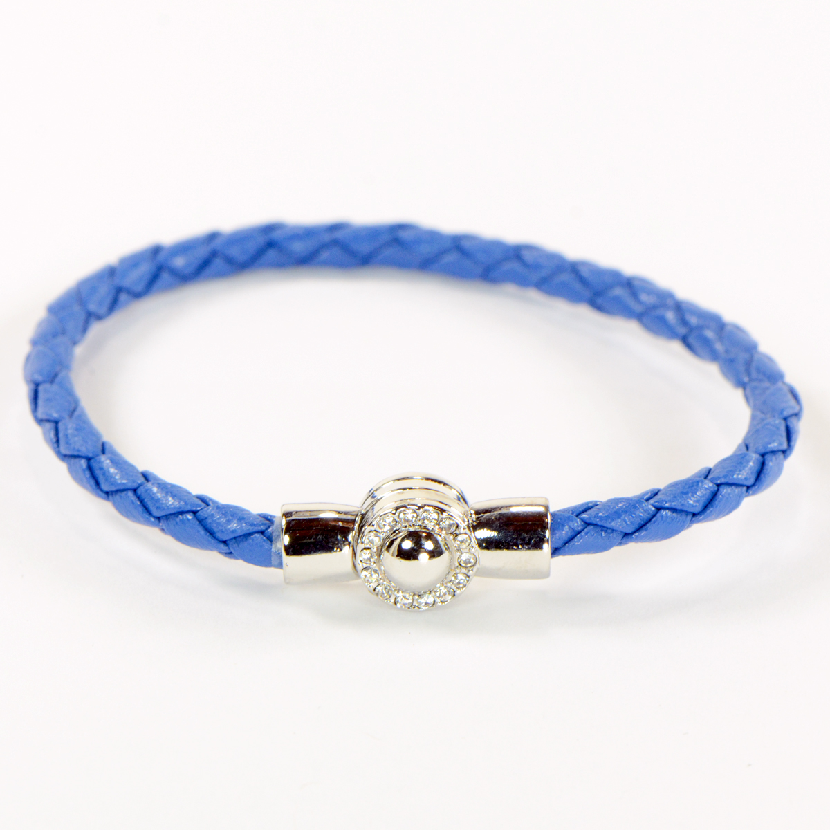 - Magnetic Clasp with Crystal Detail - Blue Leather - Approximately 7 1/2"