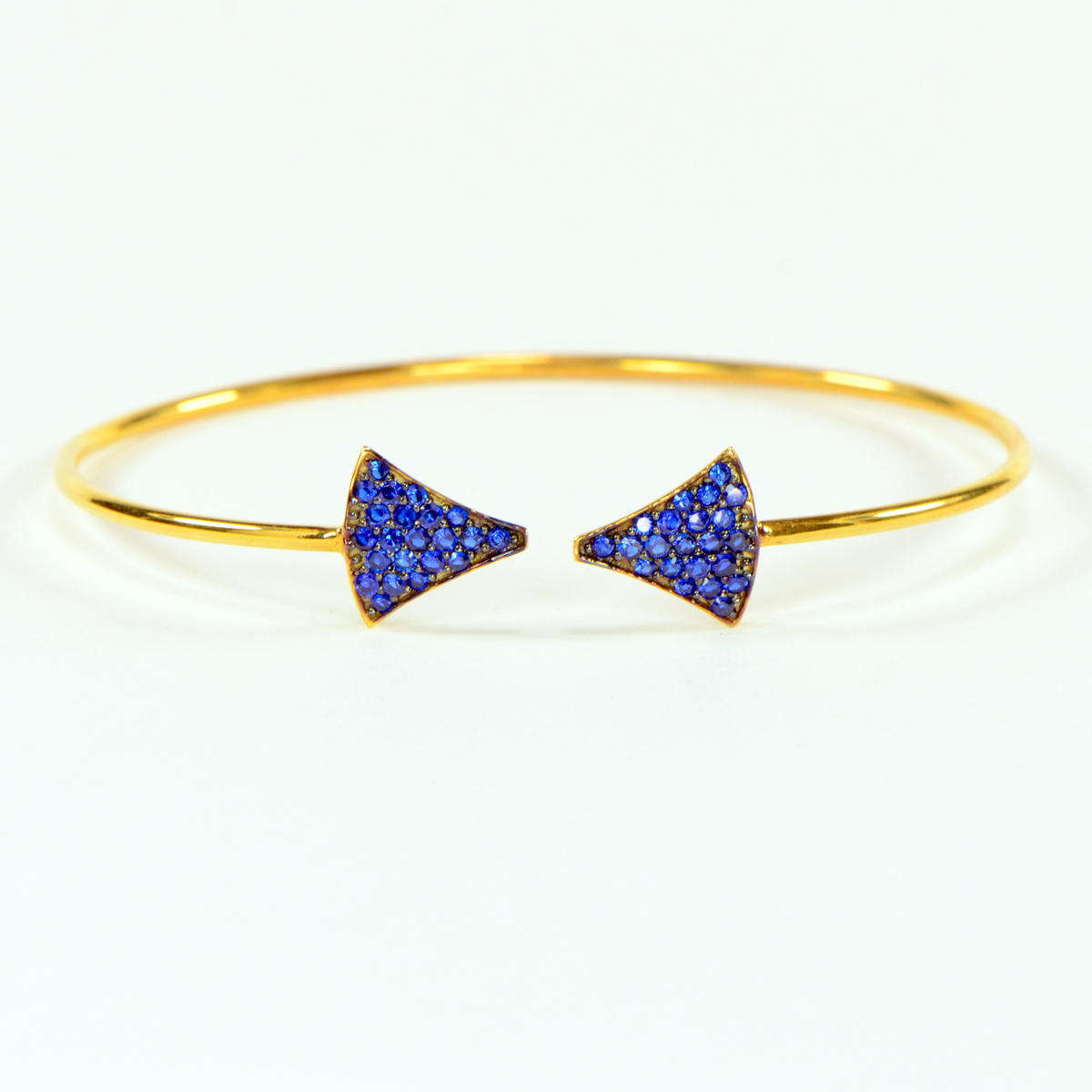 - 22K Gold Plated with Rhodium Accents & Blue CZs Triangles