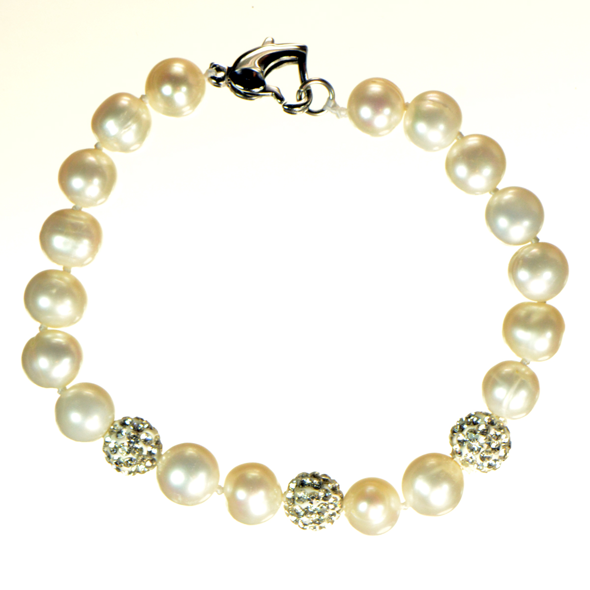 - Pearls with 3 Silver Fireballs - Heart Shape Lobster Clasp - Approximately 7 1/2"