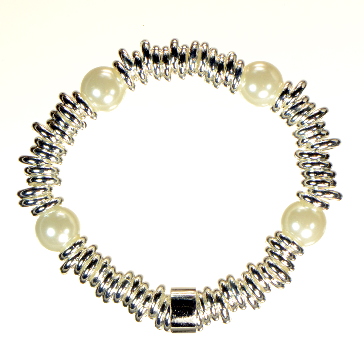 - Designer Inspired Lins in Silver Finish with 4 Pearls - Stretch Fit