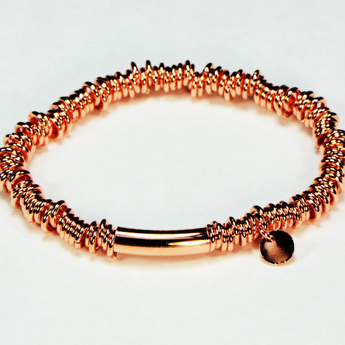 - Designer Inspired Small Link Bracelet in Rose Gold Finish - Stretch Fit
