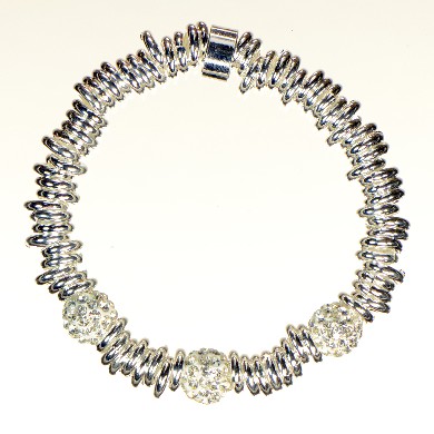 - Designer Inspired Links Bracelet in Silver Finish with 3 Pave Balls