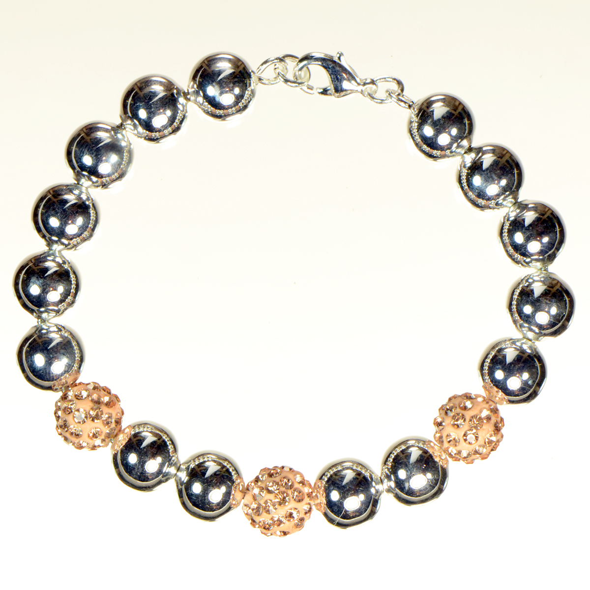 - 10mm Siver Finish Beads with Peach Pave Balls