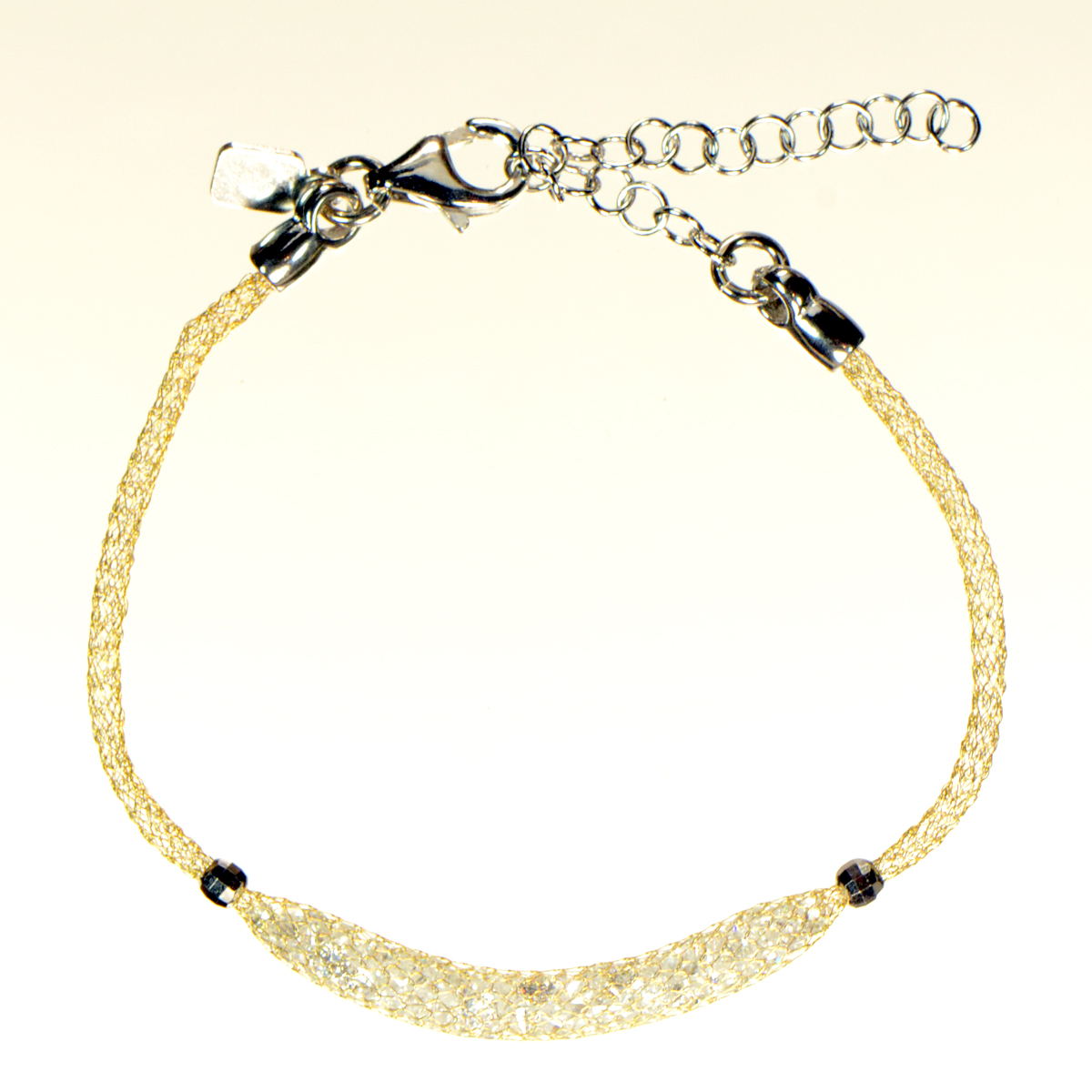 - Sterling Silver Bracelet with Crystals Enclosed in Gold Mesh