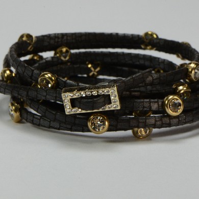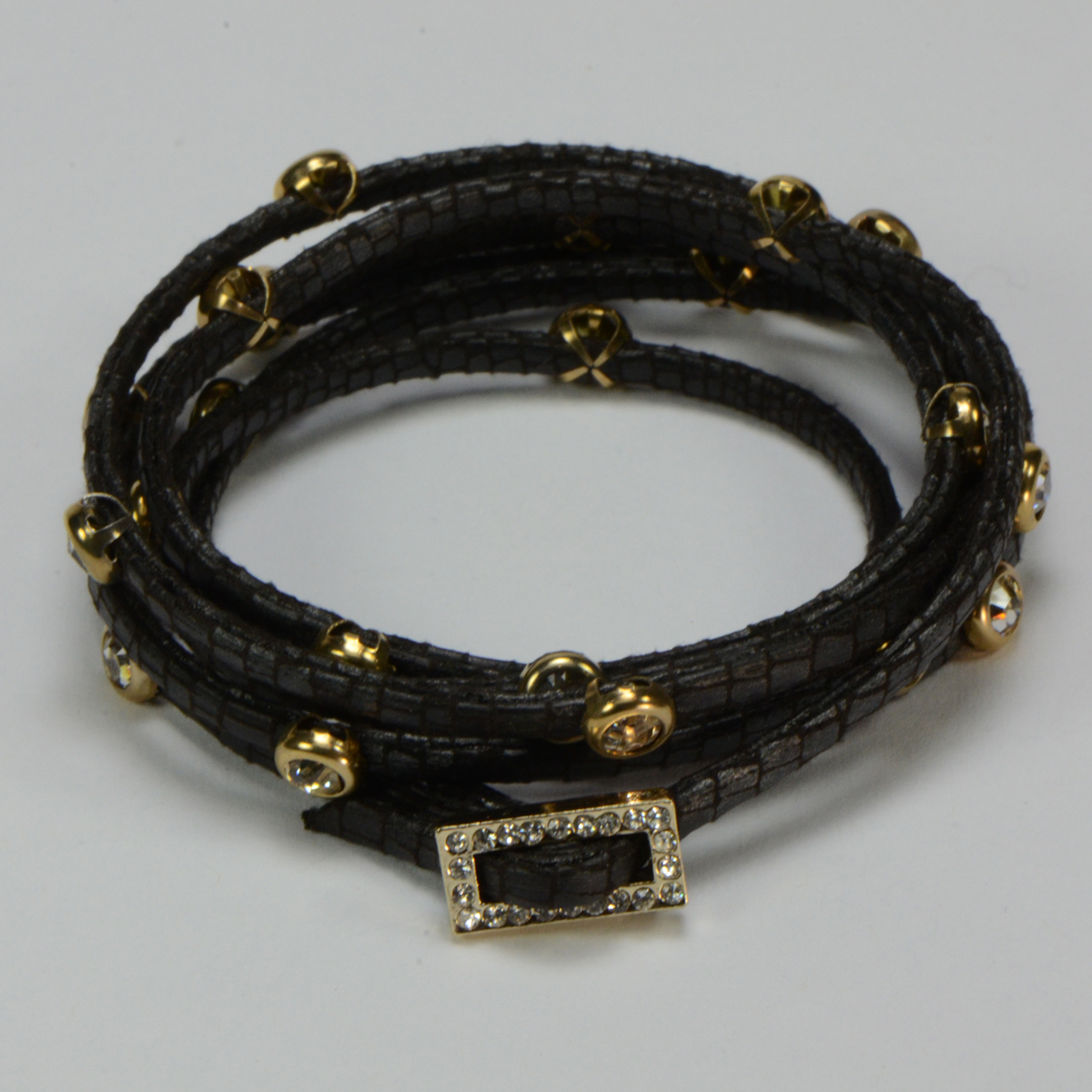 - Black Python Leather Wrap with CZs Set in Gold Bezels