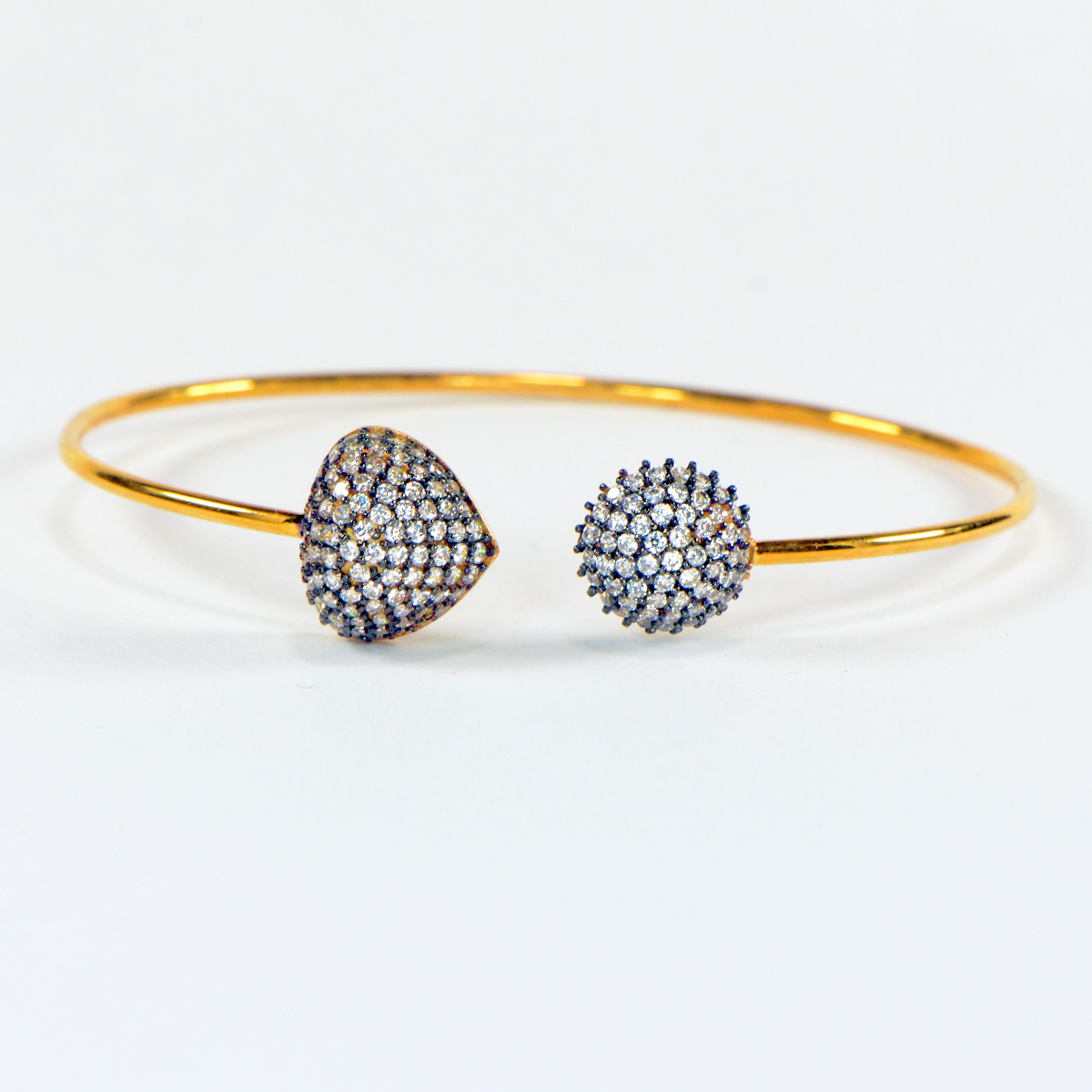 - 22k Gold Plated Circle & Heart Shape with Rhodium Accents & CZs