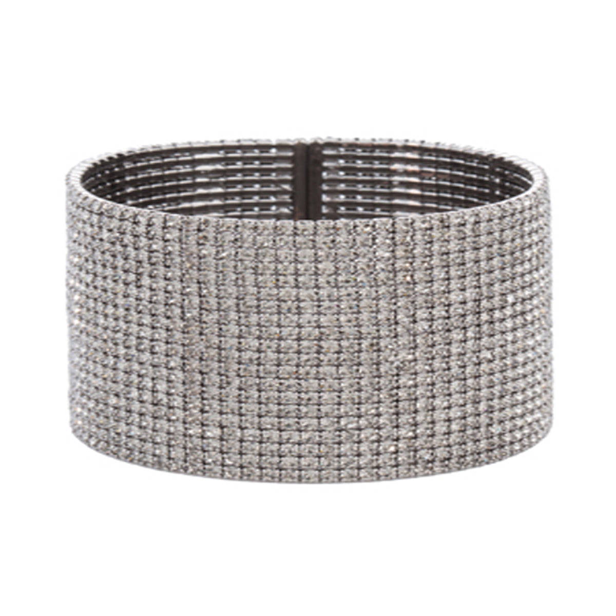 - 20 Rows of Micro Pave CZs in Gunmetal Finish - 1 3/4" in Width - Adjustable Fit