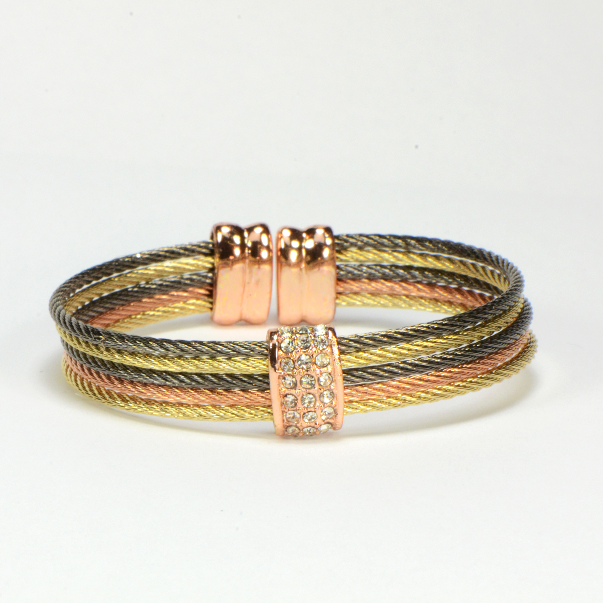 Multi Cable Open Cuff in Multi Tone Finish with Pave Accent Bracelet