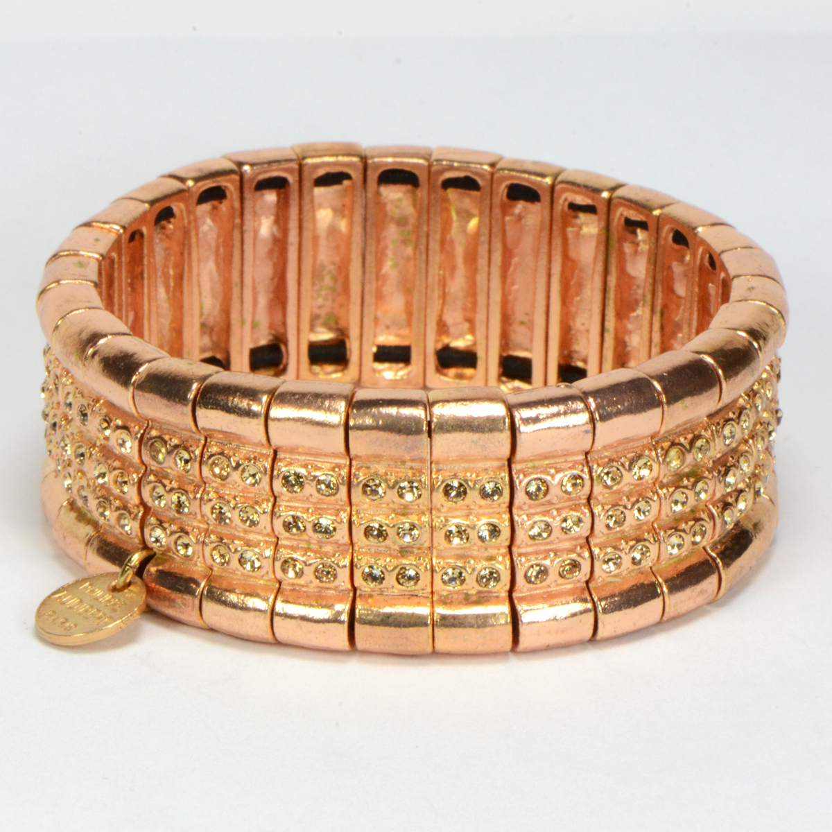- Rose Gold Plated Cuff with 3 Row of Topaz Swarovski Crystals from Parisian Designer Phillipe Audibert
