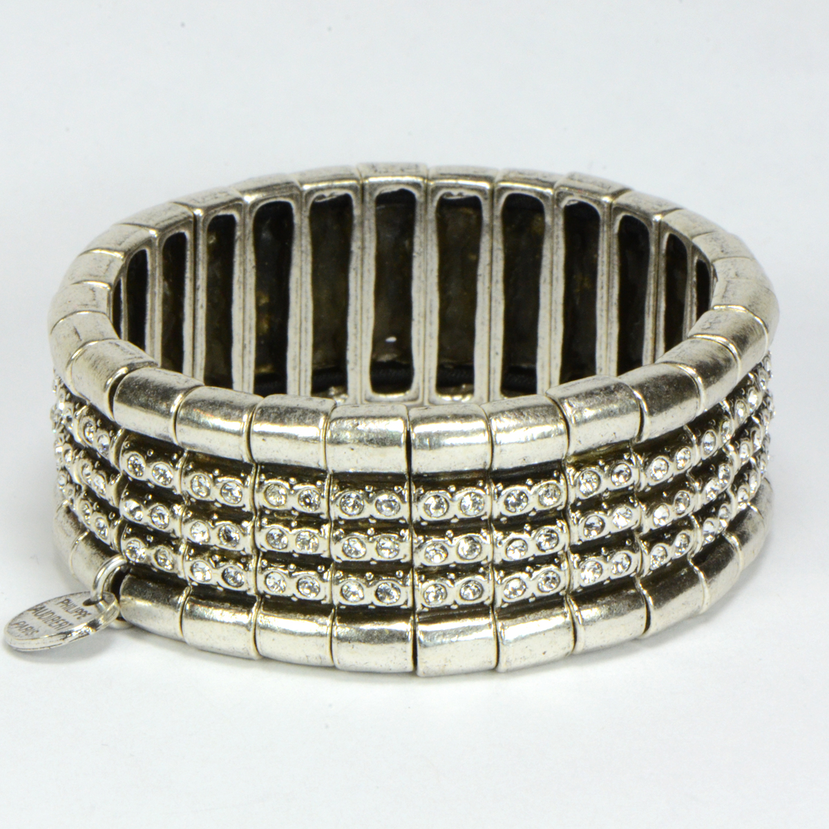 - Pewter Cuff with 3 Rows of Swarovski Crystals from Parisian Designer Phillipe Audibert