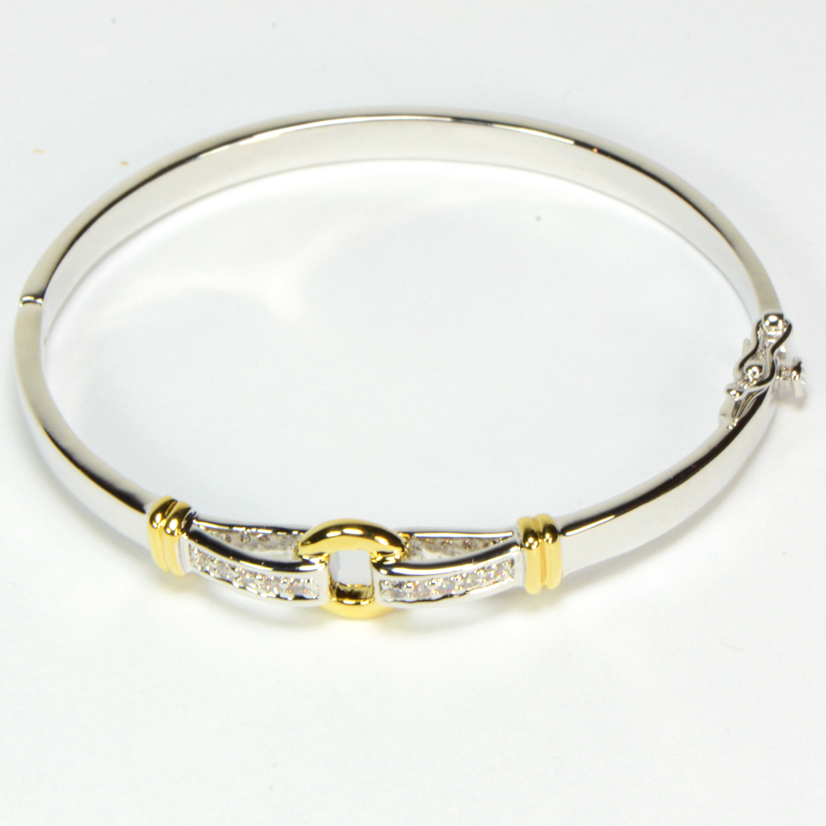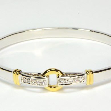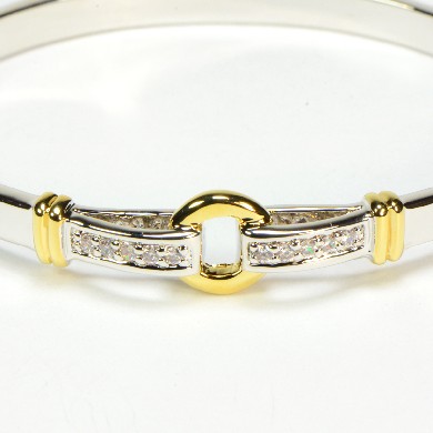- Silver Tone Bangle with Crystals & Gold Tone Accents