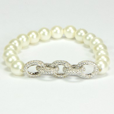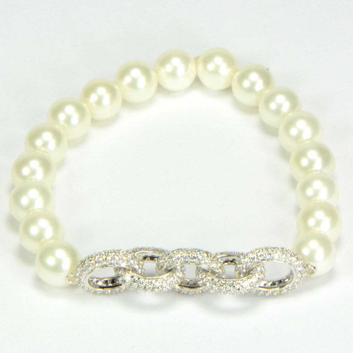 - Sea Shell Pearls on a Stretch Bracelet with 5 Pave Links - Stretchy Style