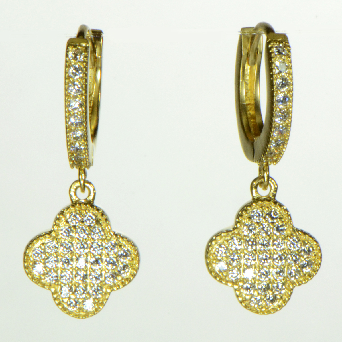 - Gold Plated Huggie with a Hanging Pave Flower/Clover