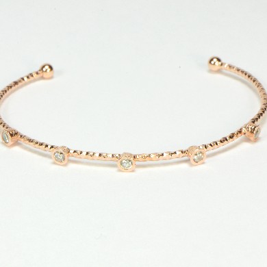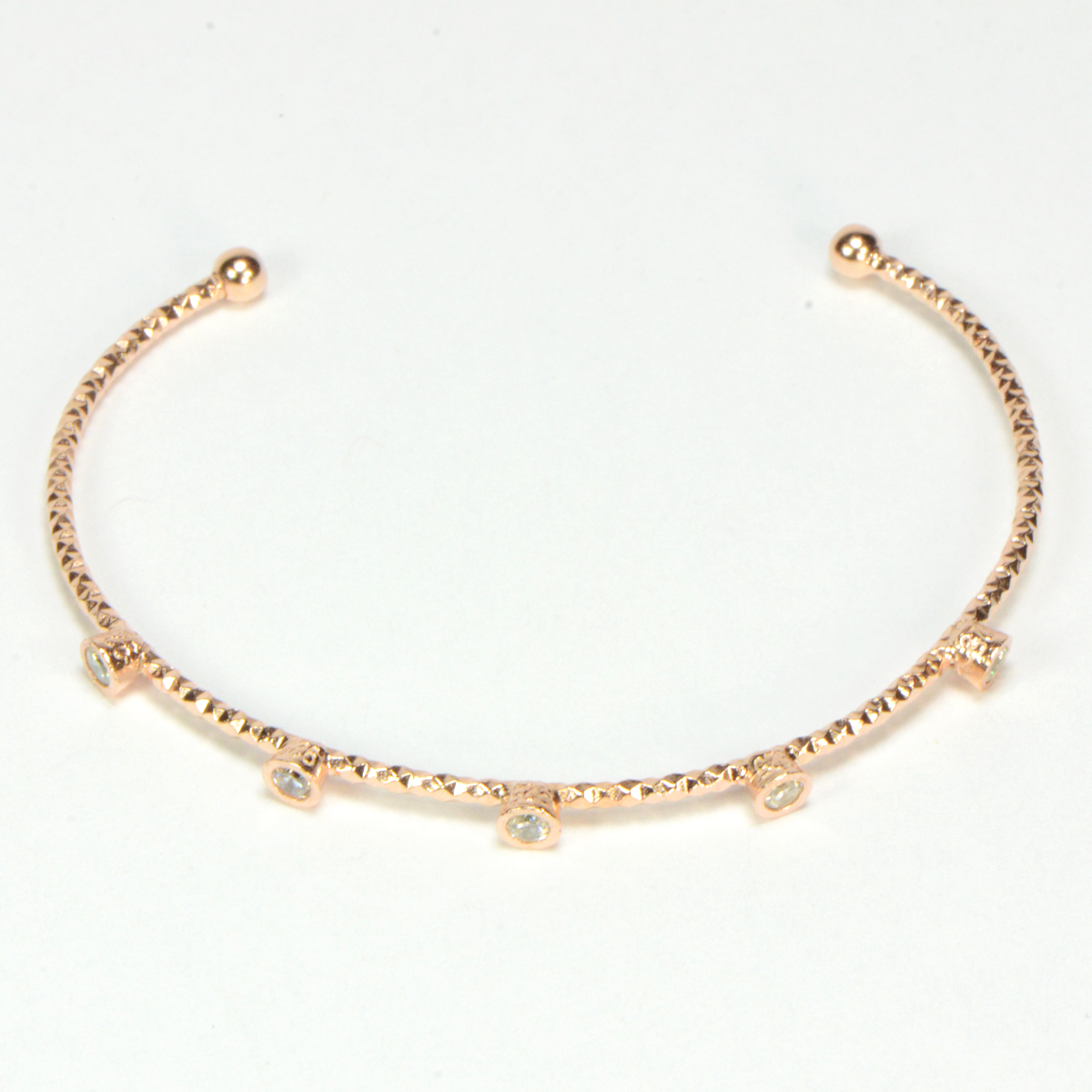 - Delicate Open Cuff in Rose Gold Plating - 5 Bezel Set CZs