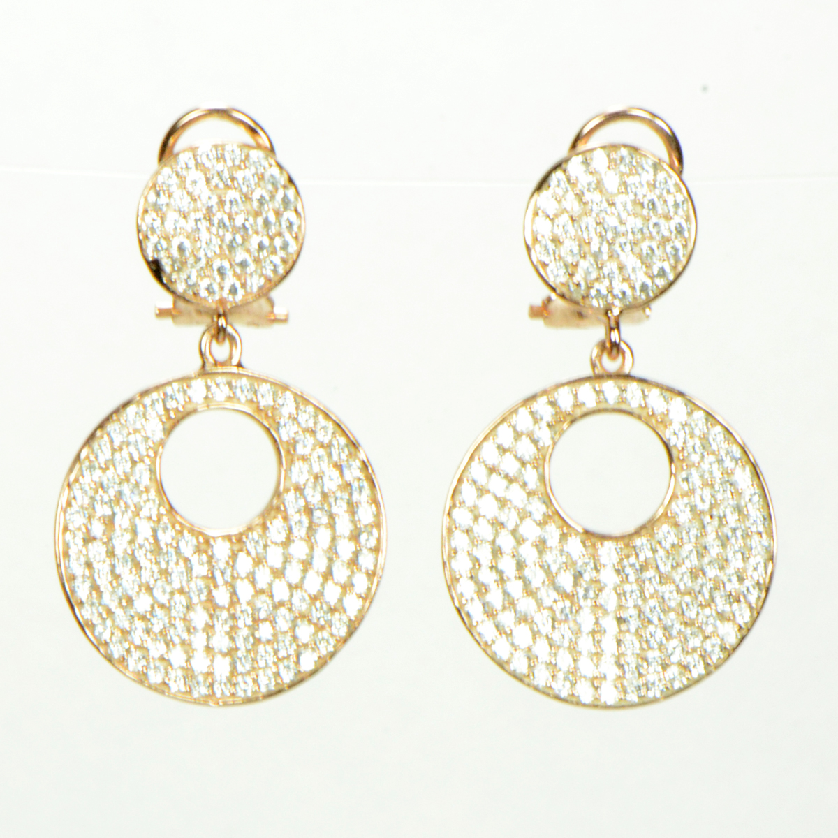 - Rose Plated Sterling Silver Post Clip Earrings with Double Open Circle and Pave CZs