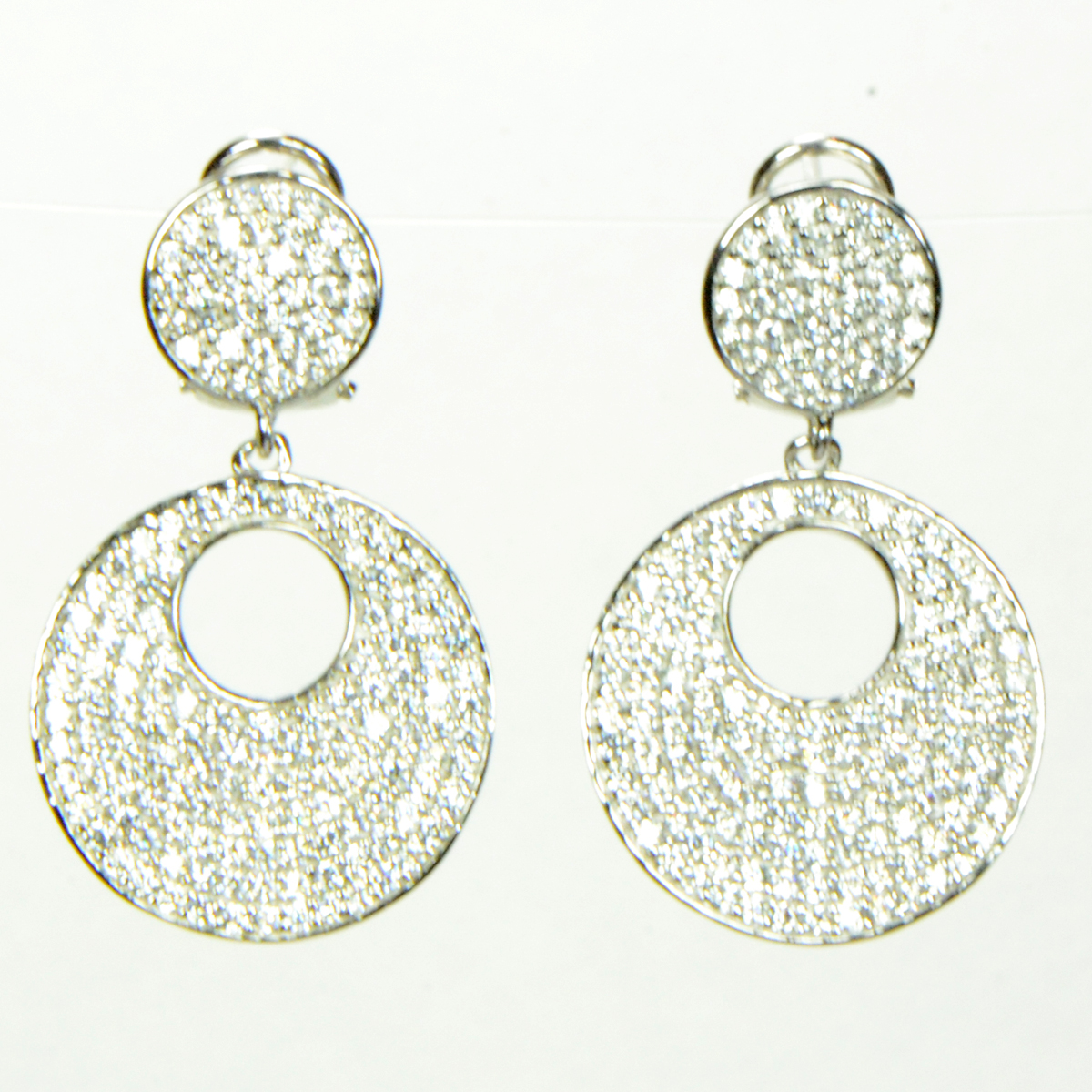 - Sterling Silver Post Clip Earrings with Double Open Circle qnd Pave CZs
