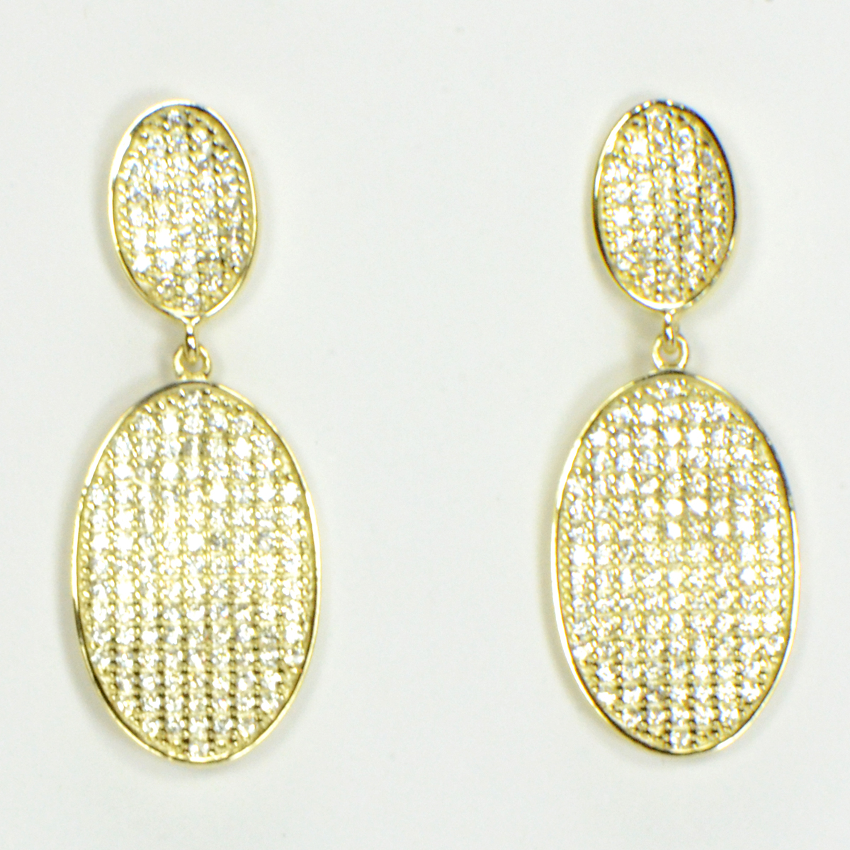 - Gold Plated Sterling Silver Double Oval with Pave CZs