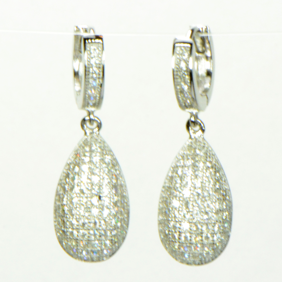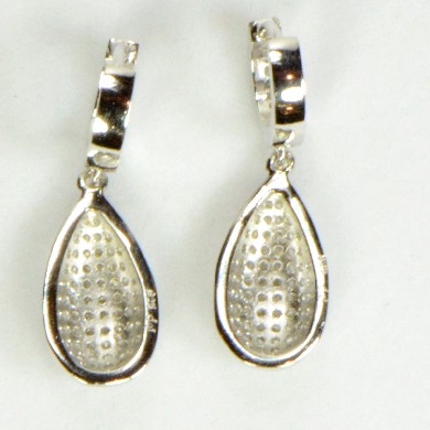 - Sterling Silver Pave Teardrop Attached to Small Hoop Pave