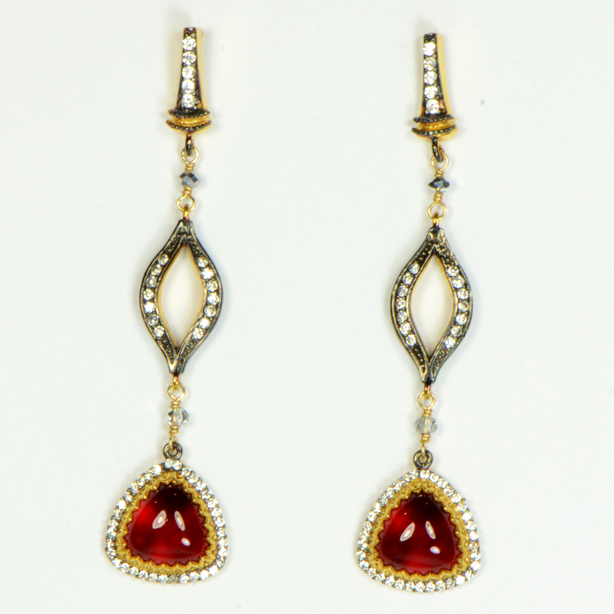Azaara 22kt Gold Vermeil with Rhodium Accents with Red Swarovski Crystals Drop Earrings