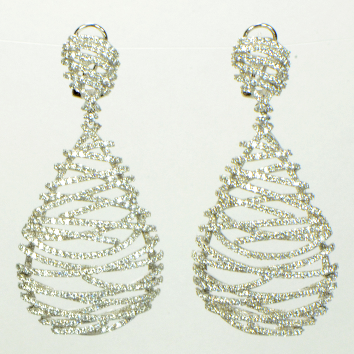 - Sterling Silver Rhodium Plated Teardrop Earrings with a Pave Design