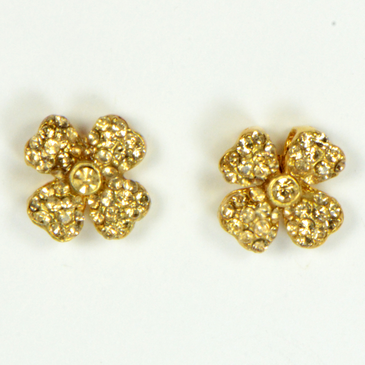 - 22K Gold over Silver Flower Stud Earrings with Hand Set Swarovski Crystals