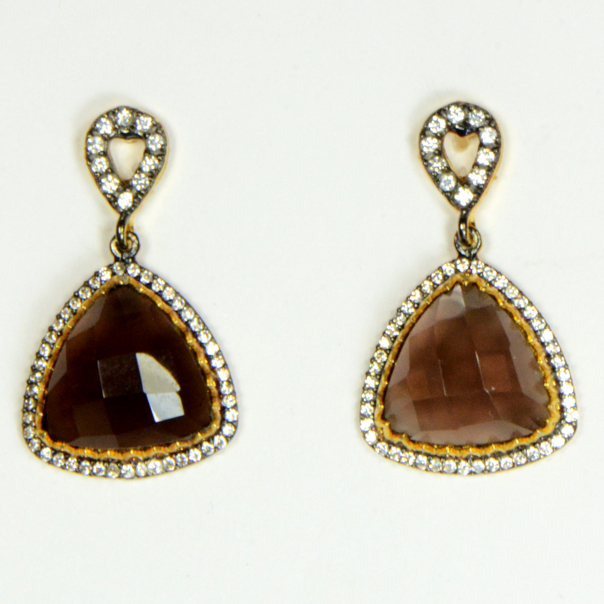 - 22K Gold Over Silver & Rhodium with Smokey Quartz & CZs Drops