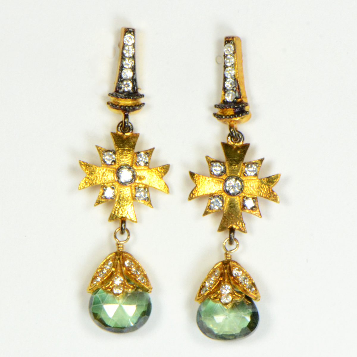 - Hand Wrapped Green Quartz & Hand Set CZs