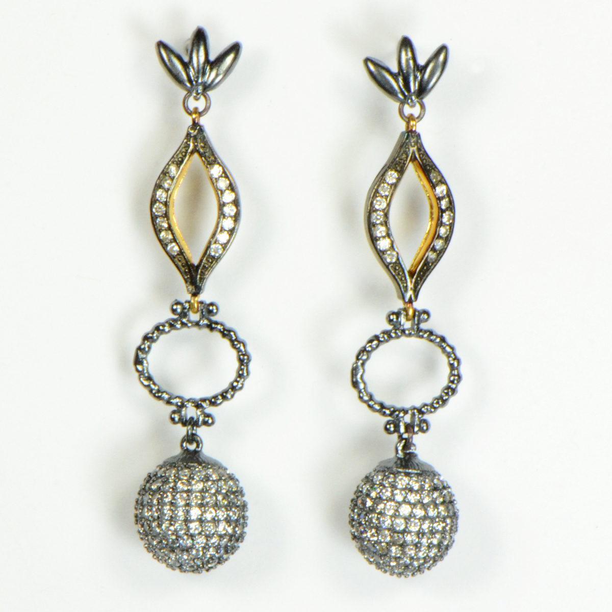 - Rhodium & Gold Plated Sterling Silver with Pave Cz Ball