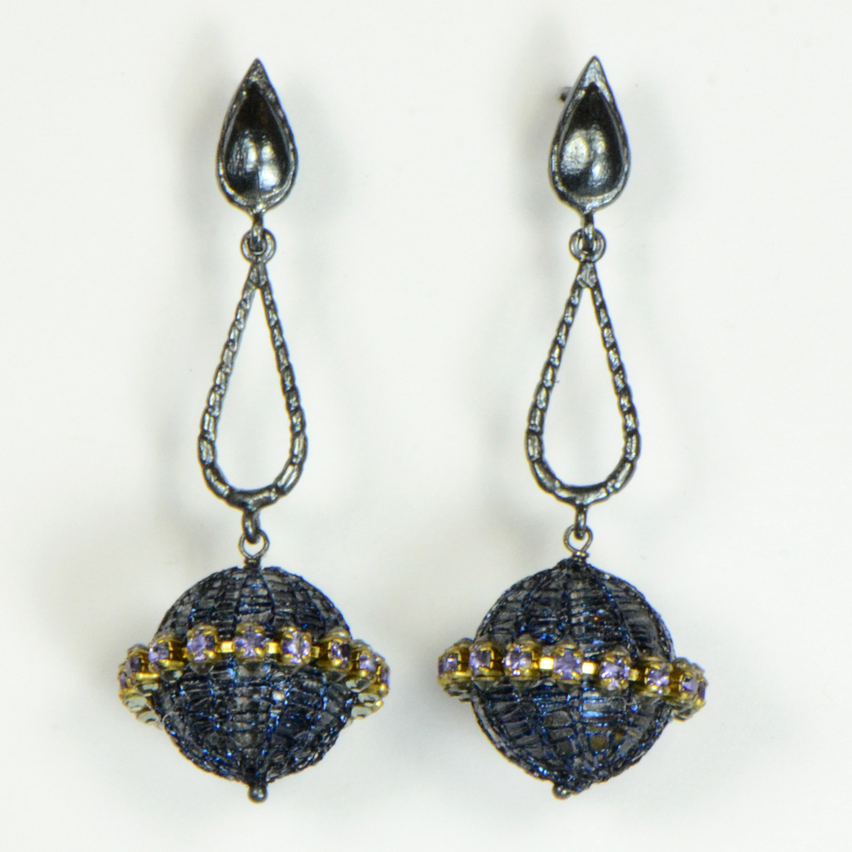 - Rhodium Plating Over Sterling Silver with Hand Wrapped Green Mesh Crystal Drop Earrings