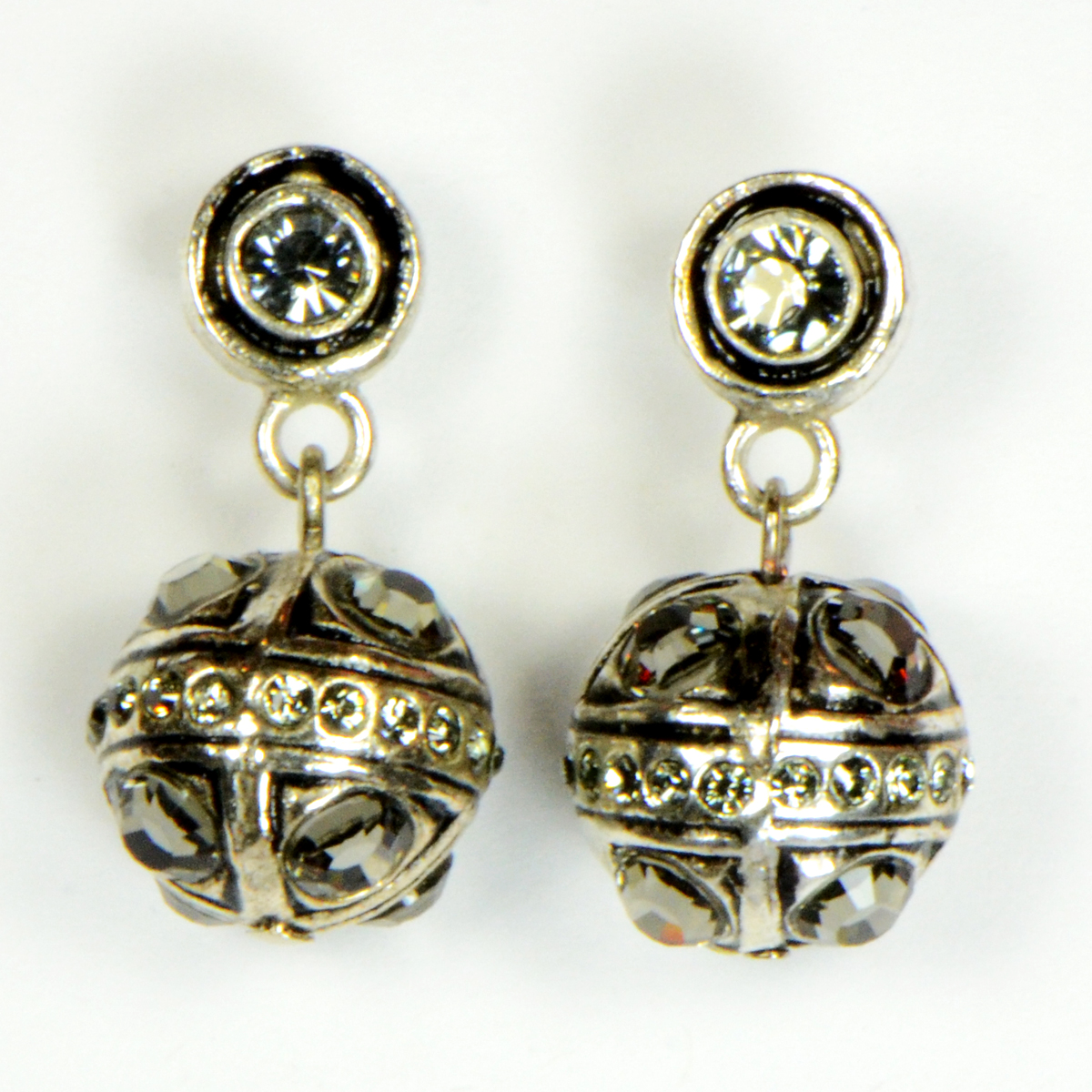 - Rhodium Plated Sterling Silver Ball with Hand Set CZs & Black Diamond Swarovski Crystals Drops