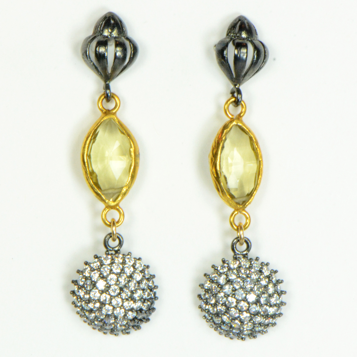 - 22kt Gold & Rhodium Plating Over Sterling Silver with CZs & Peridot Drop Earrings