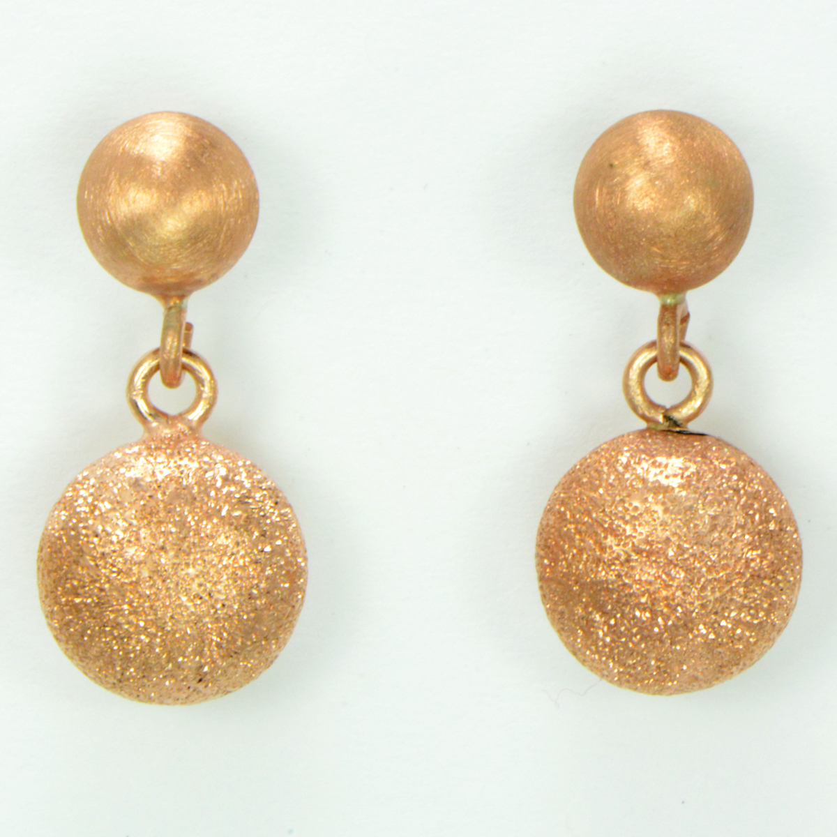 - Rose Gold Over Sterling Silver Matte & Sparkle Balls on Dangle Earrings