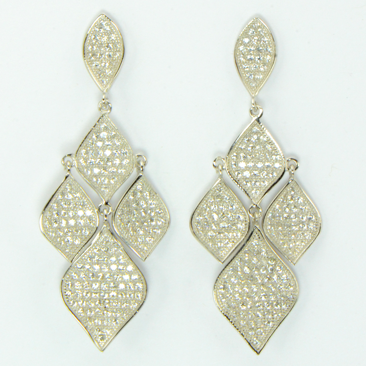 - Sterling Silver Diamond Shaped Micro Pave CZ Dangling Earrings