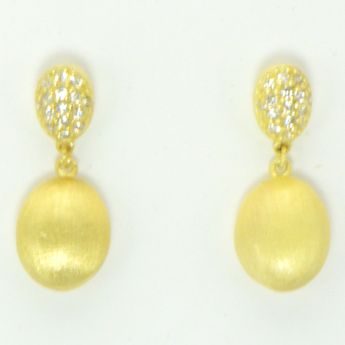 - Sterling Silver with Matte Gold Overlay with Pave CZ Post Drop Earrings