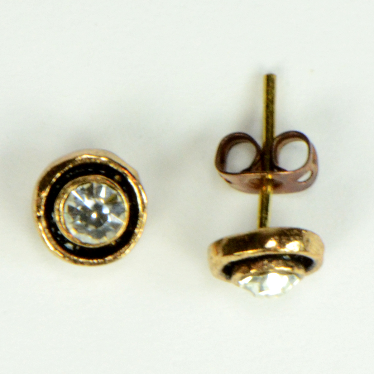 - 22k Gold Plated & Black Rhodium Stud Earrings with CZs