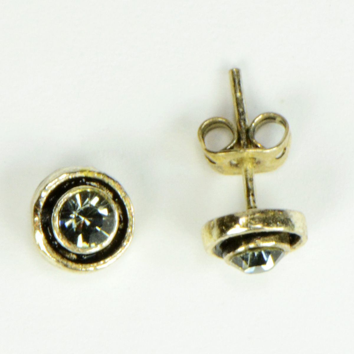 - Silver & Black Rhodium Stud Rarrings with CZs