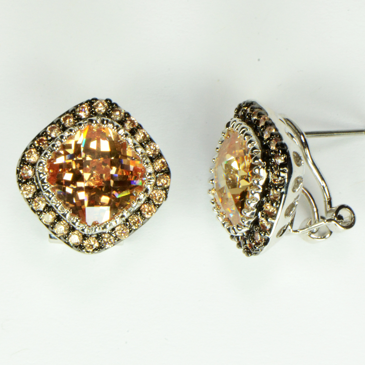 - Designer Inspired Silver Cable Earrings with CZs & Beaded Frame