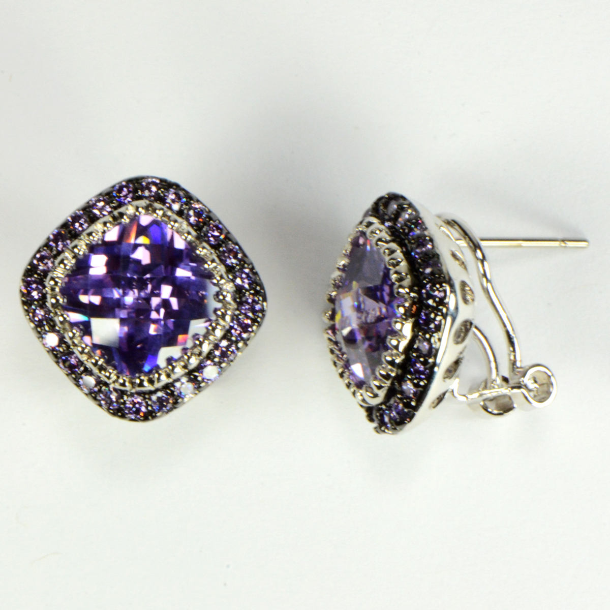 - Designer Inspired Silver Cable Earrings with CZs & Beaded Frame