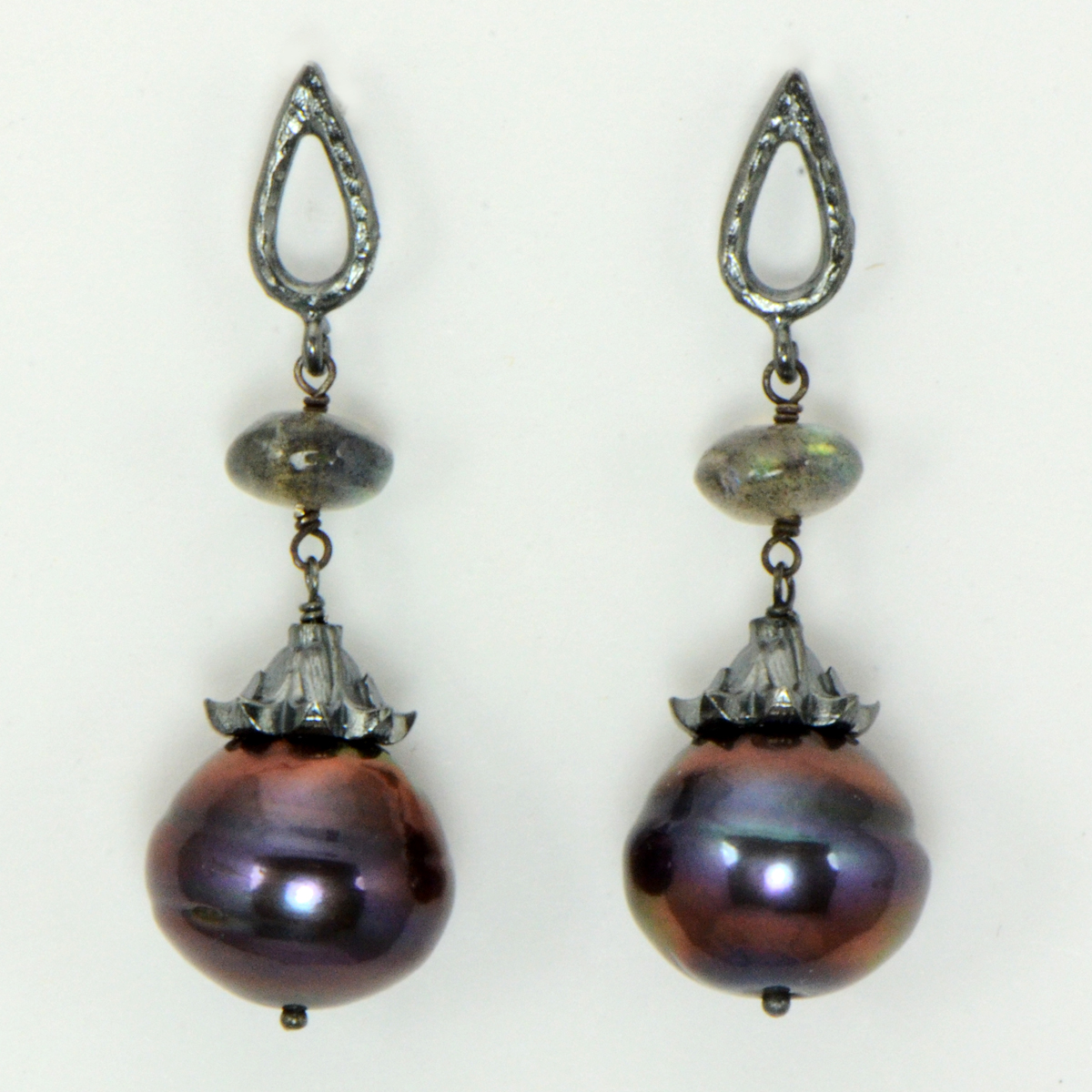 - Rhodium Plated Sterling Silver Drop Earrings with Labradorite & Black Pearls