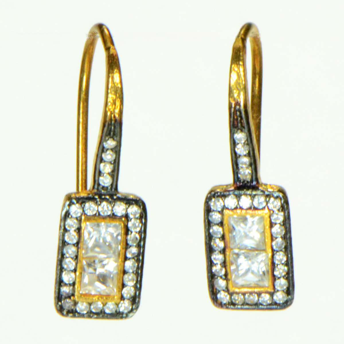 - Delicate 22K Gold Dipped Sterling Silver Rectangles with CZs Drop Earrings