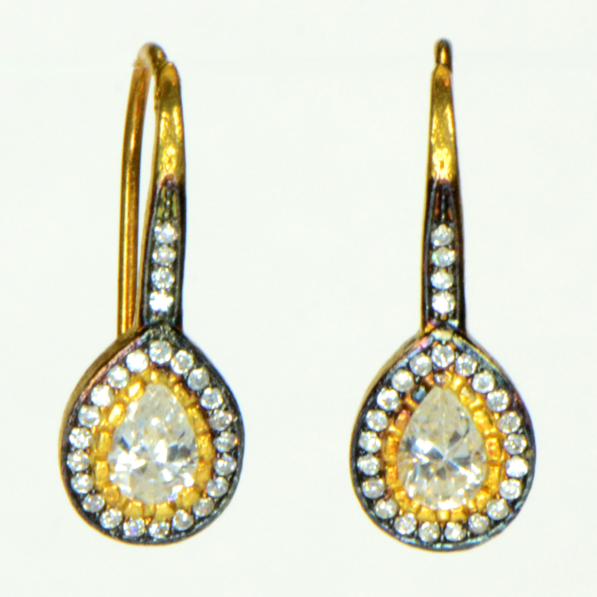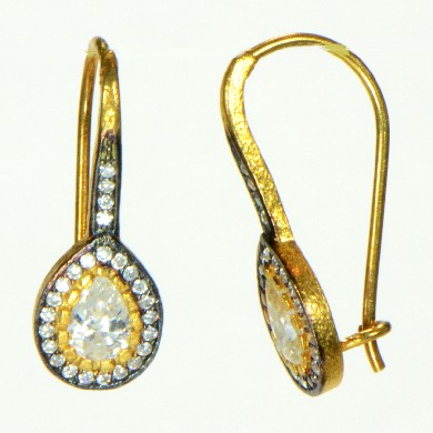 - 22k Gold Dipped Sterling Silver with Pave CZs Teardrops Earrings