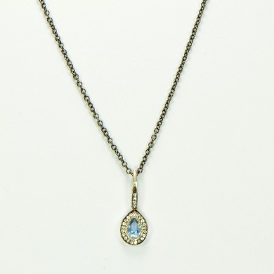 - Delicate Silver Aquamarine Teardrop Pendant with Rhodium Accents & Pave CZs