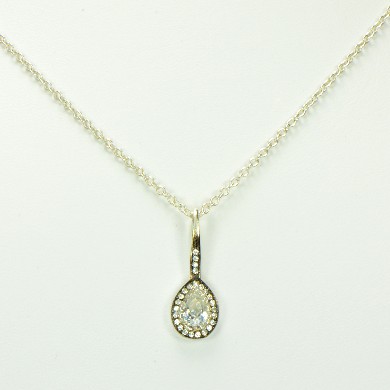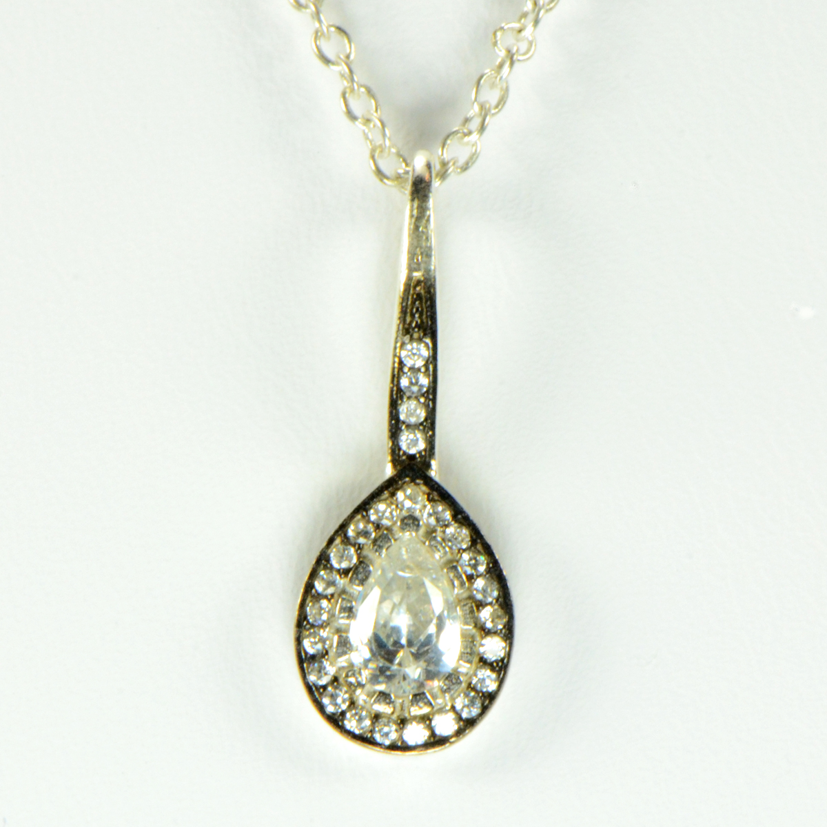 - Delicate Silver CZ Pendant with Rhodium Accents & Pave CZs