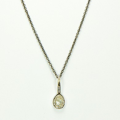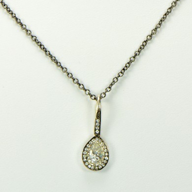- Delicate Silver CZ teardrop Pendant with Rhodium Accents & Pave CZs